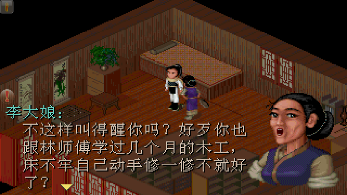 这时走出房门,会遇到三个苗人,剧情就不多说了。接下来从楼梯走下去,婶婶说让逍遥哥哥赶走门口的醉