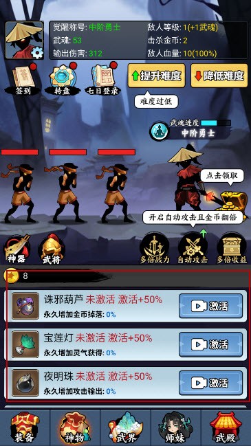 3、执行武术的本质,不断提高您的内心,对剑进行调整,不怕危险,挑战强大的敌人。