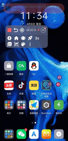 不需要ROOT权限,并可用于全局应用程序,录制手势操作后可直接通过悬浮按钮播放执行。