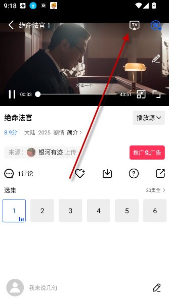点击视频右上角的tv图标就可以电视投屏播放了