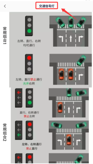 2、系统将展示各类信号灯的图文说明,包括红灯、绿灯、黄灯的具体含义和使用场景。