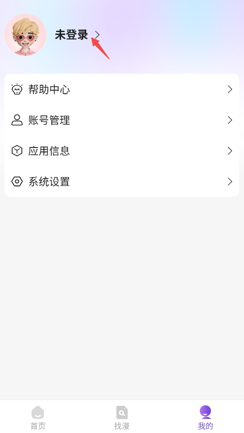 3、在 “我的” 页面里,找到 “未登录” 入口并点击;