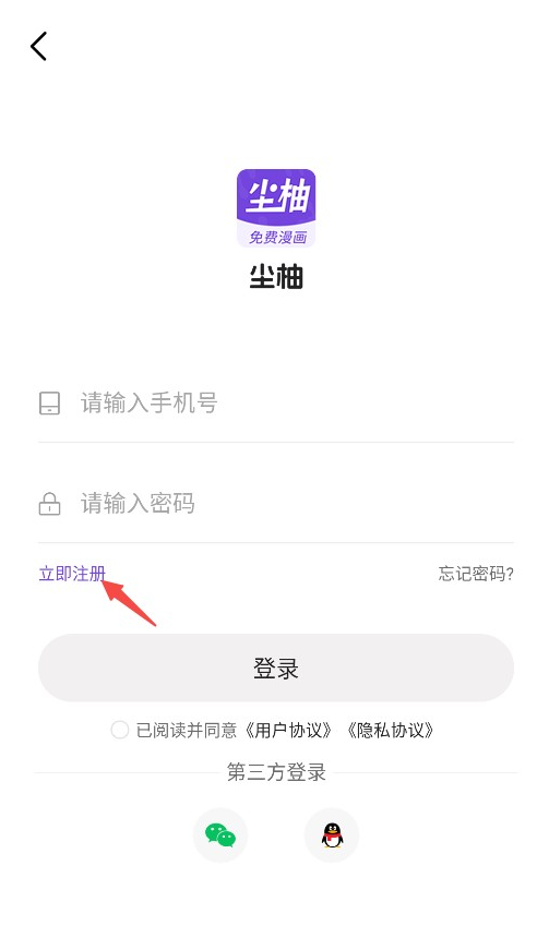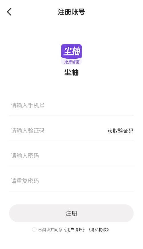 1、打开尘柚漫画软件,先同意相关的用户协议与隐私政策;